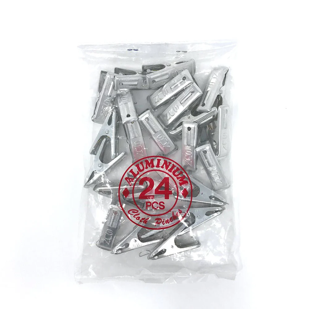 Comes in a pack of 24. The aluminum clothespins are great for any household job around the house.