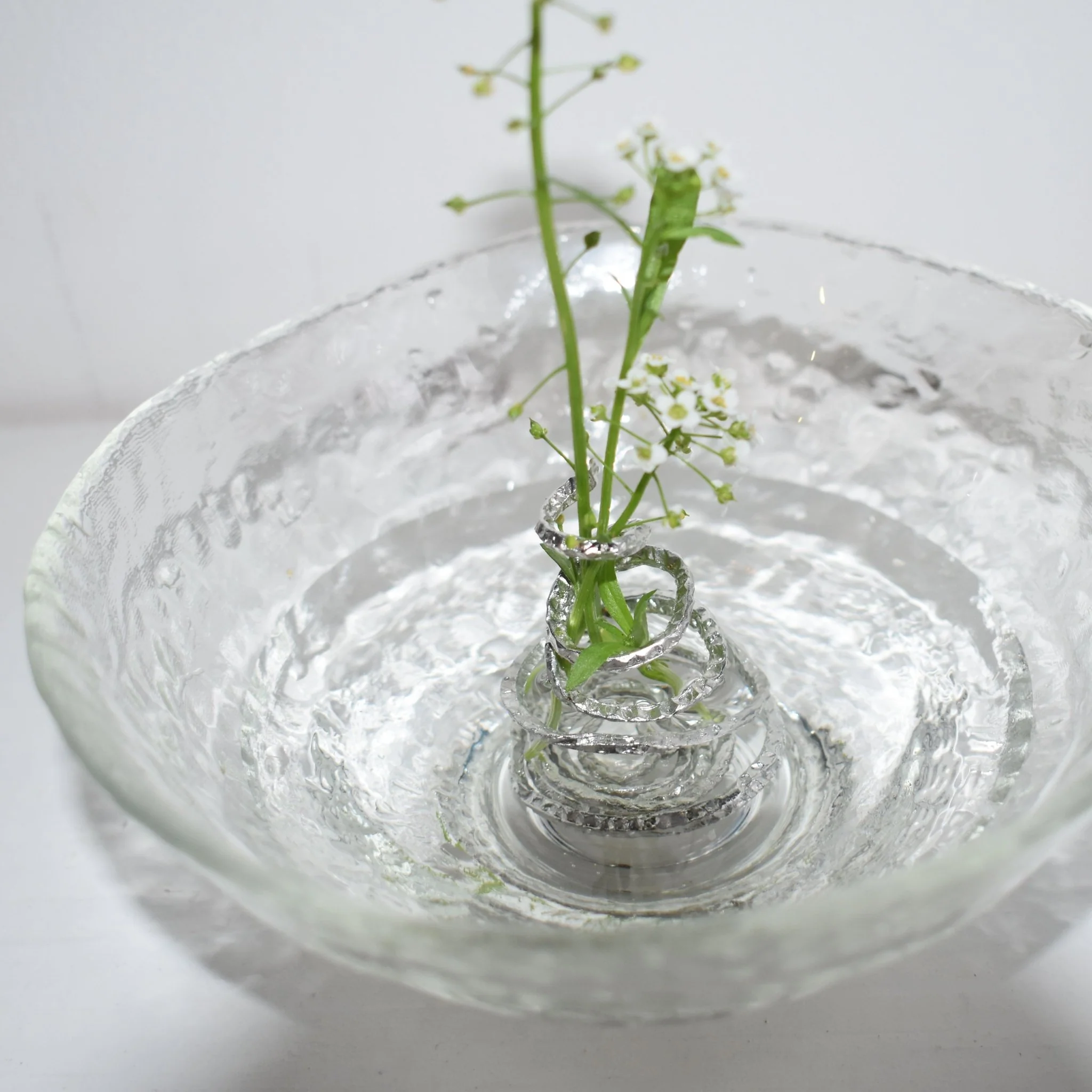 The holder’s spiral form can be adjusted by hand to suit different stems. There’s no fixed shape — each arrangement is a small decision, inviting you to slow down, notice, and place with care.