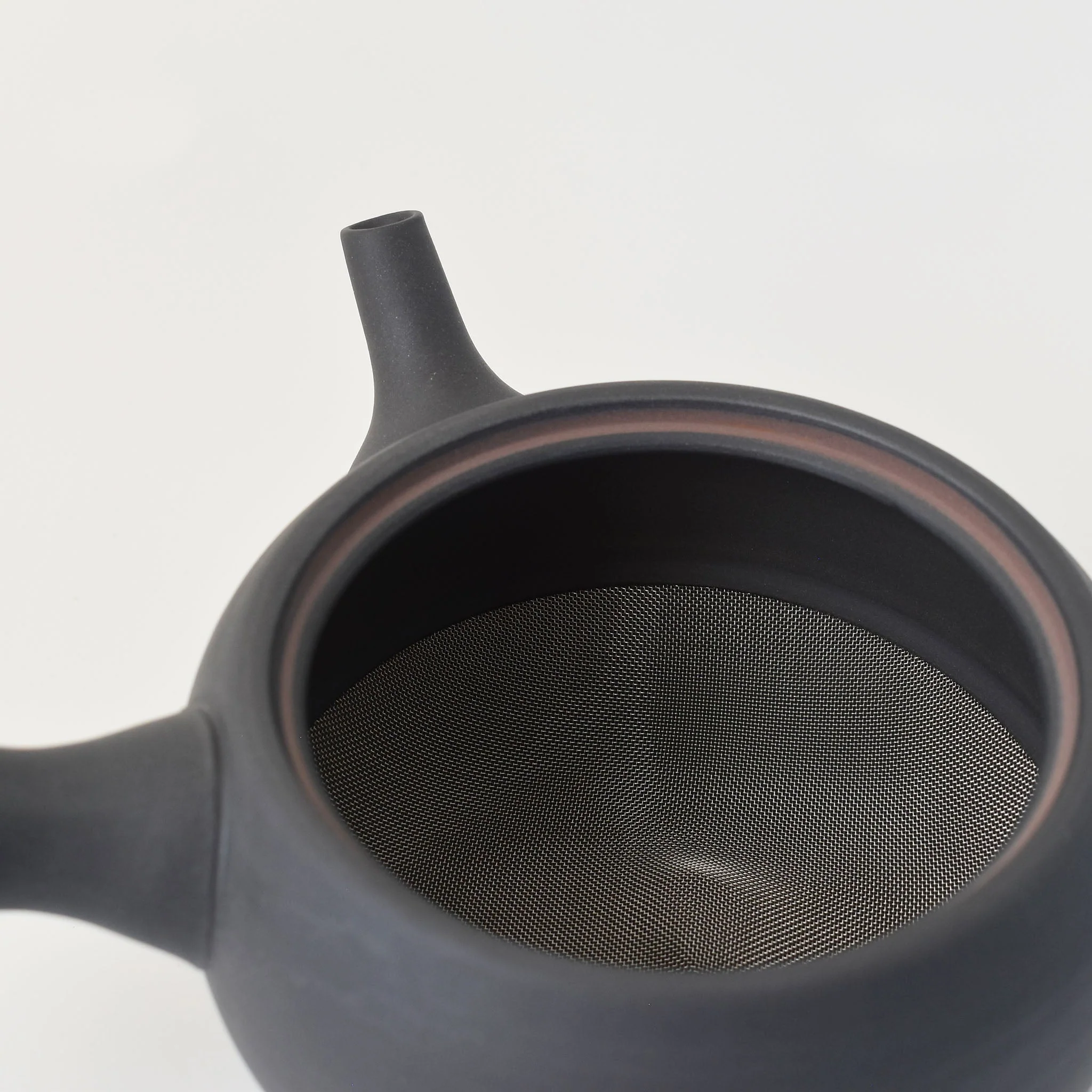 Made from iron-rich clay traditionally used for kyusu, this teapot is fired without glaze, allowing the natural iron in the clay to turn the surface deep black.